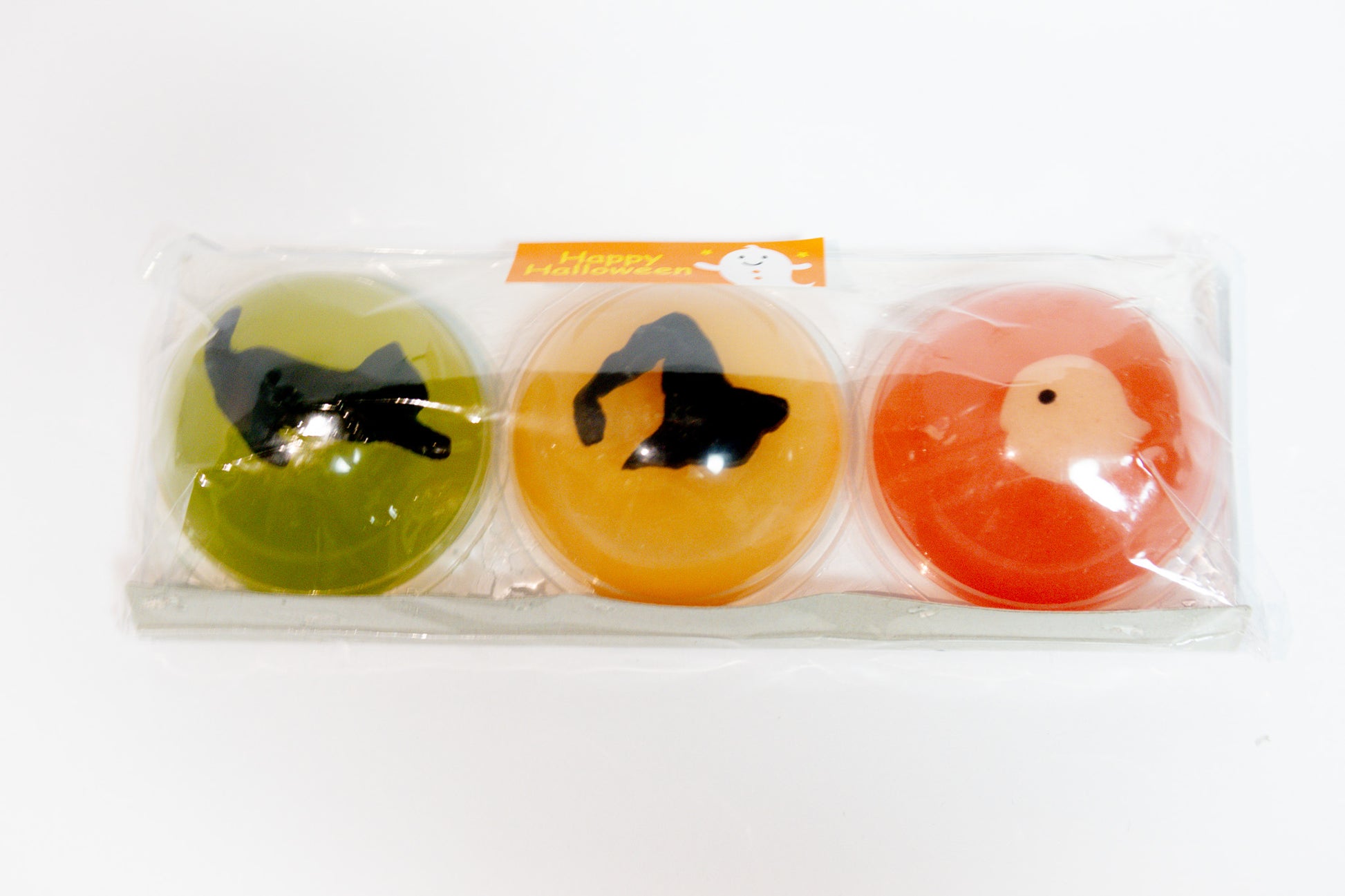 つるんとした口あたりの羊羹に、黒ねこ/魔女/おばけ等のシルエット意匠を浮かべた季節限定仕立て。配りやすく、見た目も楽しいハロウィンスイーツです。